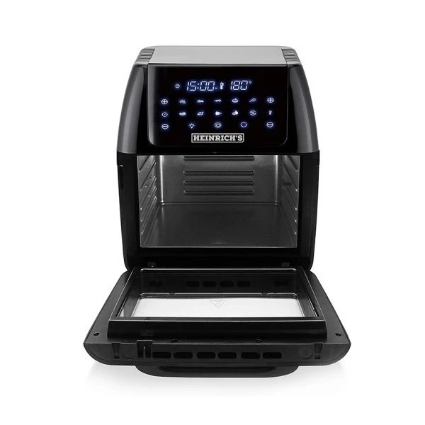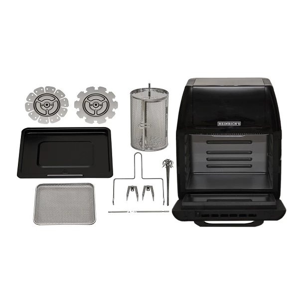 کشور سازنده:چین تحت لیسانس آلمان .تعداد برنامه ها:۹ برنامه . کانوکشن:دارد . لوازم جانبی : دستگیره برداشتن ، سیخ جوجه گردان ، سینی پخت ، شبکه توری ، مخزن سرخ کن گرد . دارای سیستم ایمنی پایه ضد لغزش و سرخوردن . برنامه ها صفحه نمایش : جوجه ، خشک کردن میوه ، سیب زمینی سرخ کرده ، کیک ، گوشت ، گوشت با استخوان ،ماهی ، مرغ ، میگو ، یخ زدایی مواد غذایی . عملکردها : جوجه گردان ، خشک کردن میوه ها ، سرخ کن ، فر .قابلیت تنظیم دمادارد . خاموش شدن خودکاردارد . تایمردارد . نوع کنترل لمسی . نوع سبدکشویی . پنجره شفاف برای کنترل کامل روند پخت دارد .بدنه عایق سرد دارد . سیستم ایمنی پایه ضد لغزش و سرخوردن دارد . دارای دریچه خروجی هوا